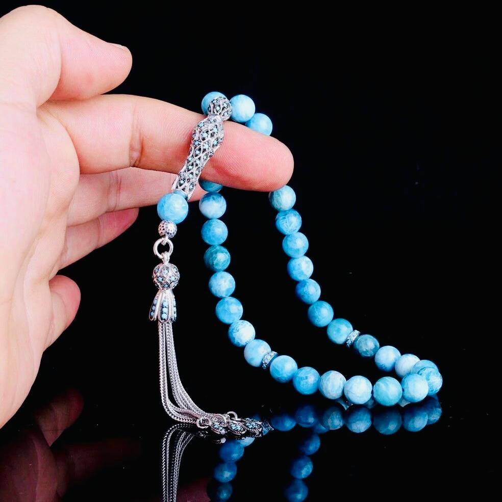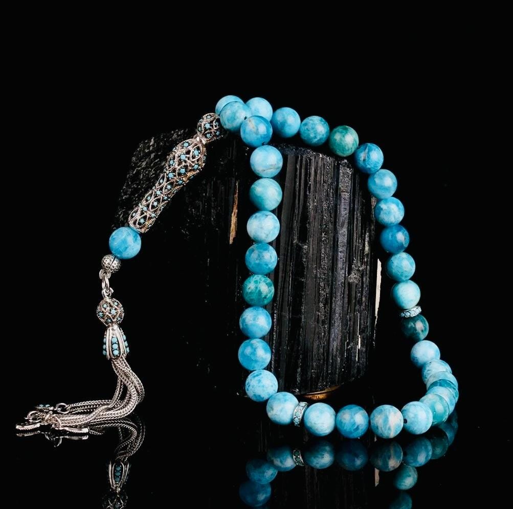 This misbaha is crafted from natural Apatite stones, combined with a sterling silver tassel adorned with zircon. Elegant and meaningful, it’s perfect for prayer, meditation, or as a thoughtful gift.