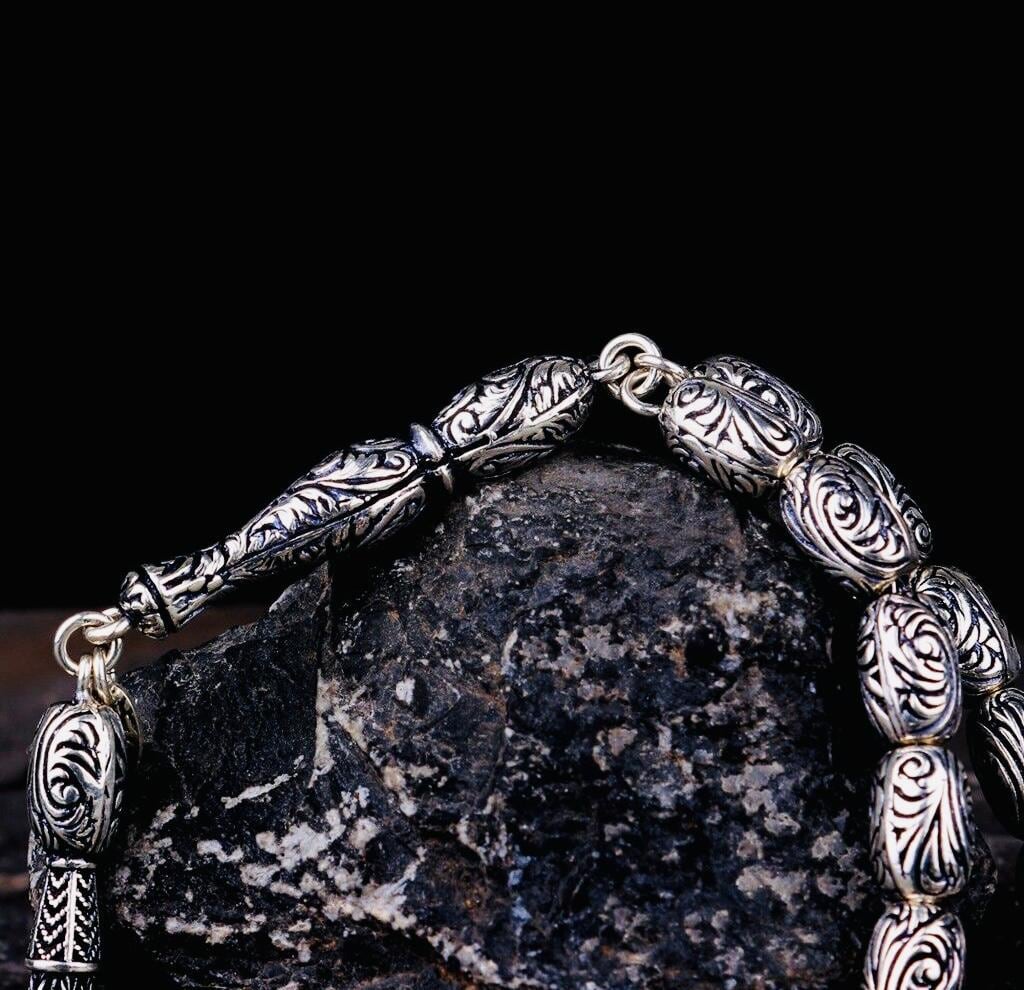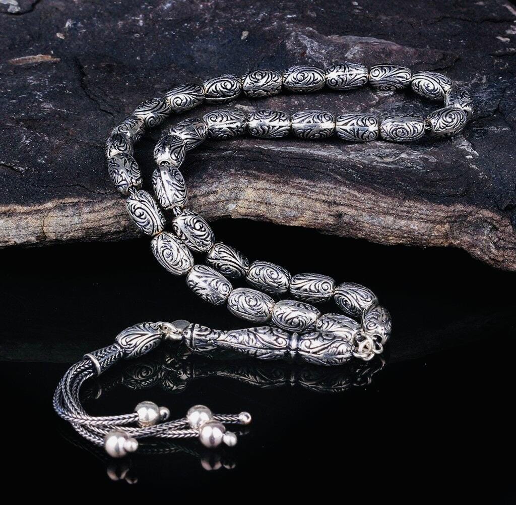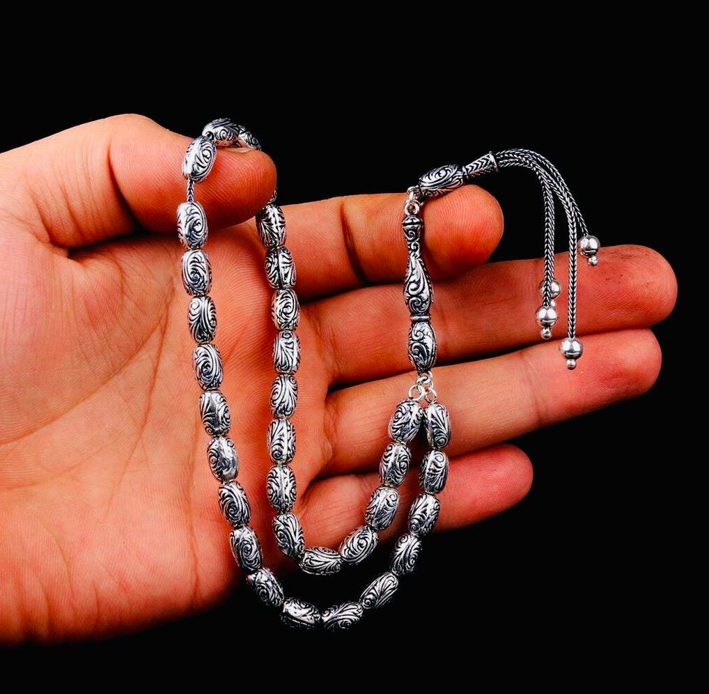 925 Sterling Silver Tasbih – Engraved Model – 6.9 mm – 27 cm