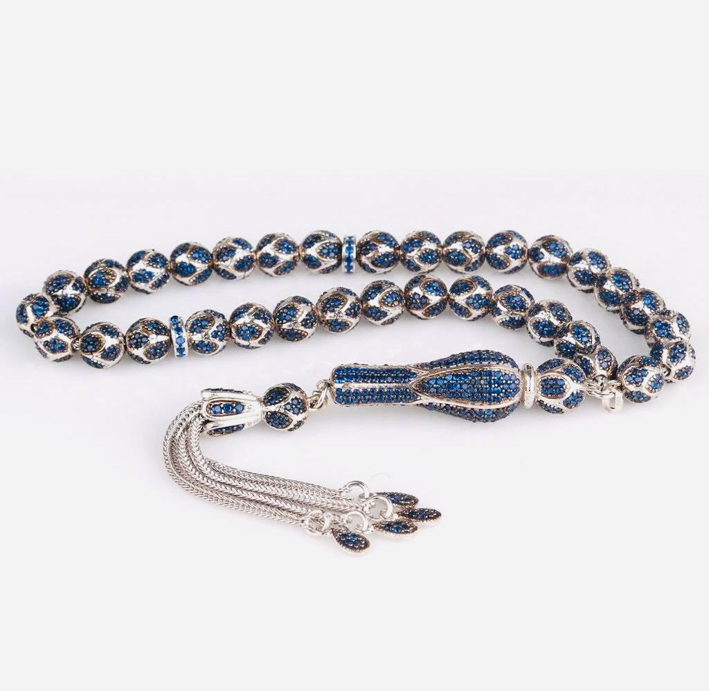 925 Sterling Silver Tasbih – Blue Zircon Design – 7.4 mm
