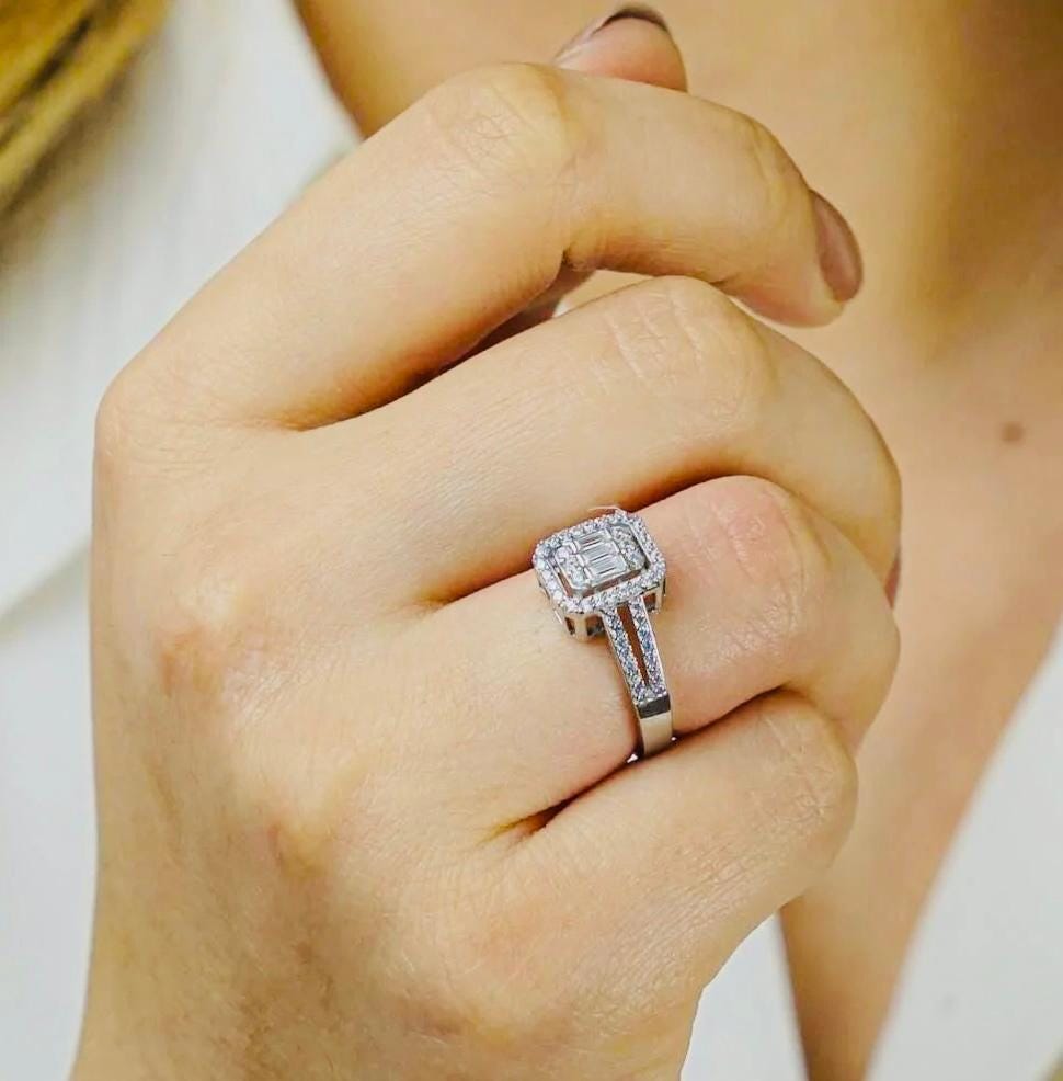 Product Description: • Material: 925 sterling silver • Average weight: 3.85 g (may vary by ring size) • Finish: High polish • Elegant baguette-cut cubic zirconia stones for a luxurious sparkle • Suitable for both daily wear and special occasions • Delivered in a stylish ring box