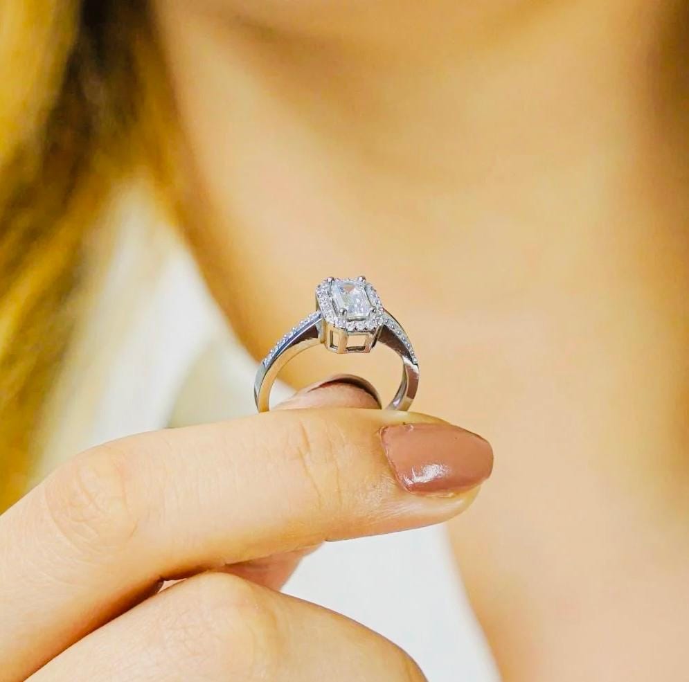 This stunning diamond-style baguette zircon ring is made of genuine 925 sterling silver. Its polished surface adds brilliance, making it perfect for both everyday elegance and special occasions.