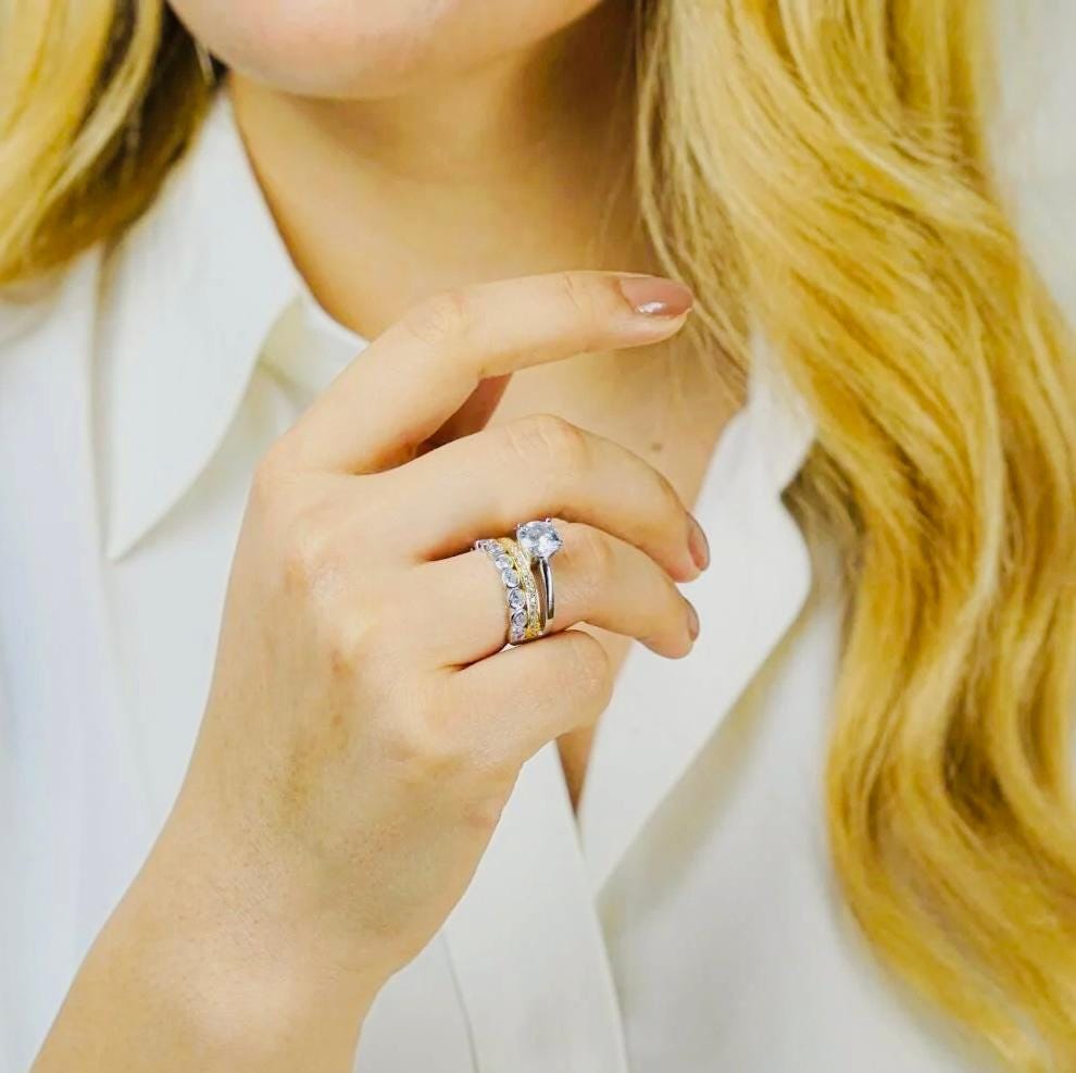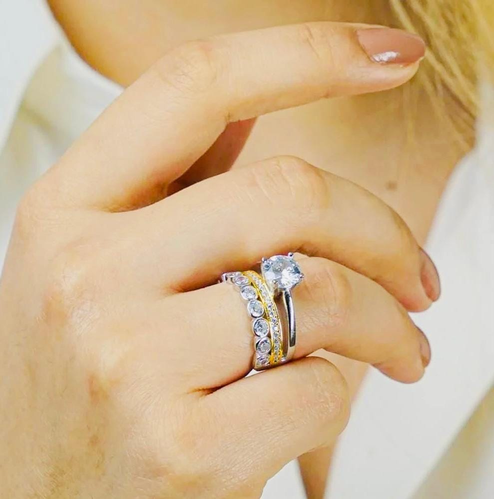 925 Sterling Silver Half Eternity Solitaire Ring – 5.25 g – Women’s Silver Ring