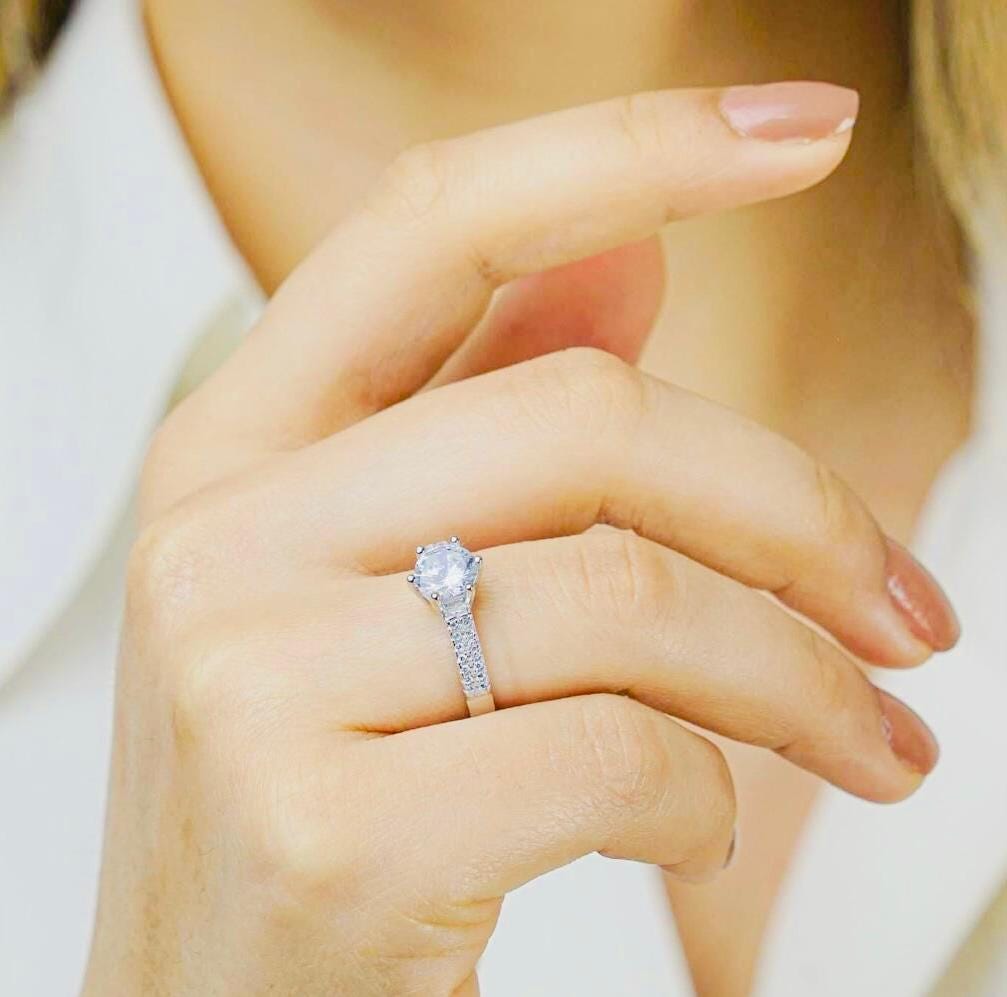 This diamond-inspired zircon solitaire ring is crafted from solid 925 sterling silver. Its bright shine and refined setting make it perfect for both everyday wear and special occasions.