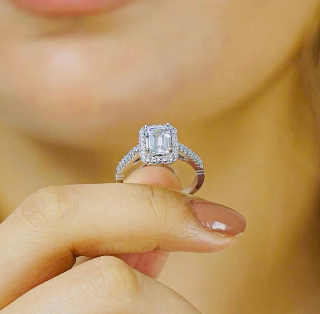 This stunning sterling silver ring features sparkling zircon stones in princess and baguette cuts. Its elegant shine makes it perfect for both everyday wear and special occasions.