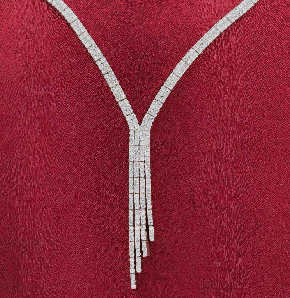 This 925 sterling silver jewelry set adds elegance and sparkle to your outfit with its sophisticated double-row design.