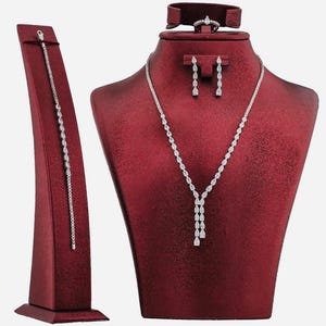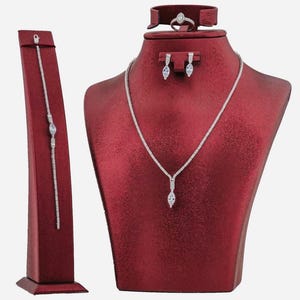 Product Description: • Material: 925 sterling silver • Length: 45 cm • Includes: Ring, Necklace, Earrings, and Bracelet • Comes in an elegant gift box