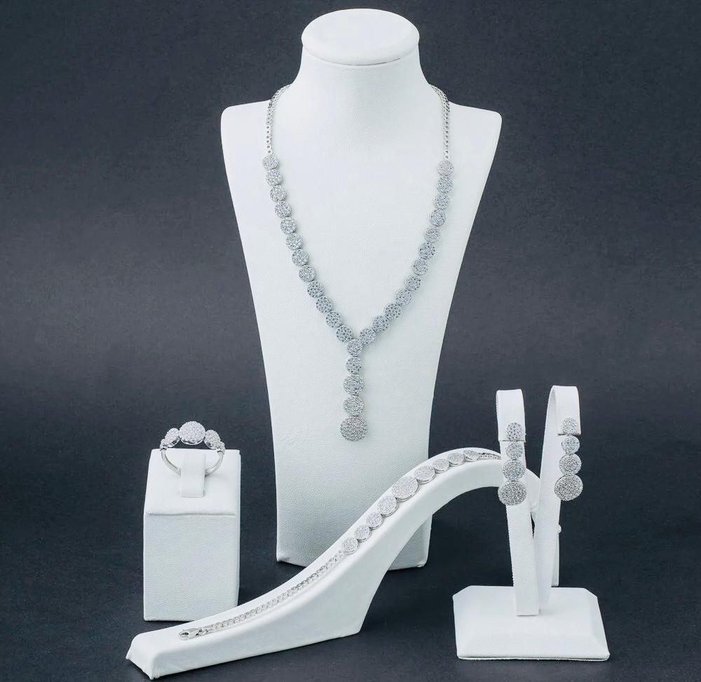 This stunning jewelry set features brilliant round zircon stones set in solid 925 sterling silver. A complete 4-piece set that adds elegance and sparkle to any outfit — perfect for weddings, gifts, or everyday elegance.