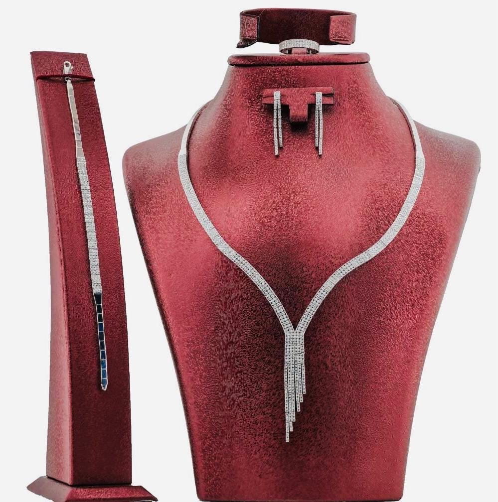 This 925 sterling silver 3-row waterway jewelry set reflects timeless elegance and sparkle, ideal for modern women.