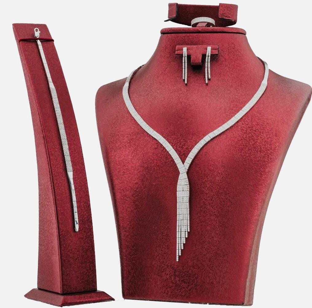 This 925 sterling silver 3-row braided jewelry set combines timeless craftsmanship and modern elegance — perfect for stylish women.