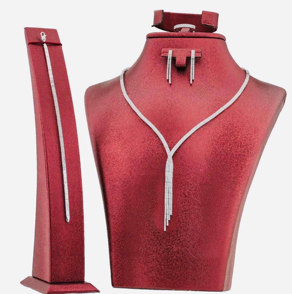 This 925 sterling silver two-row cross design jewelry set combines elegance and modern style, making it a perfect gift for her.