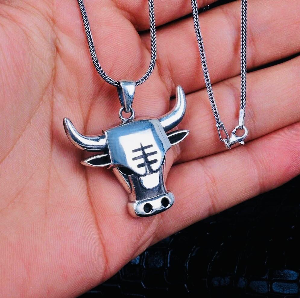 Bull Motif Medallion 925 Sterling Silver Men’s Necklace – 60 cm – 14.4 g