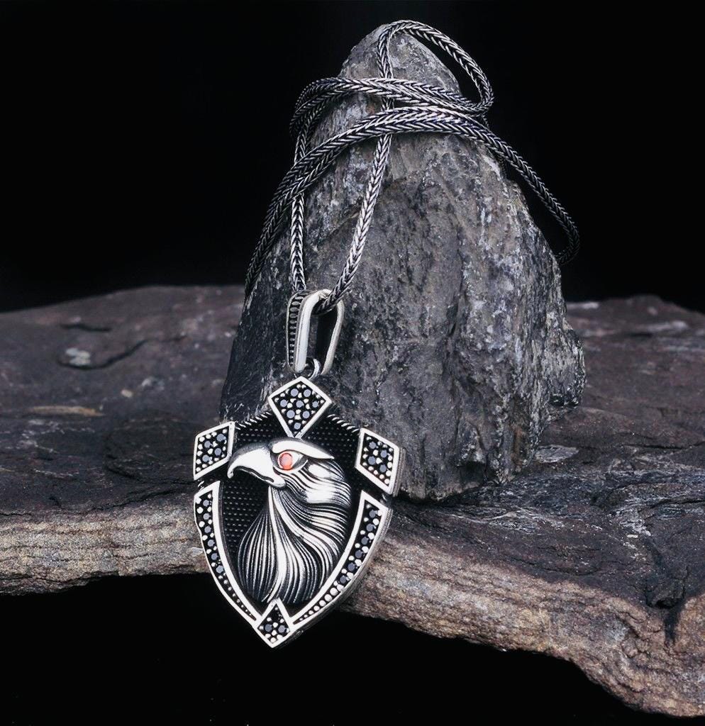 This 925 sterling silver eagle necklace symbolizes strength and freedom. Perfect for men who appreciate detailed craftsmanship and a bold, elegant look. Suitable for both casual wear and special occasions.