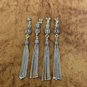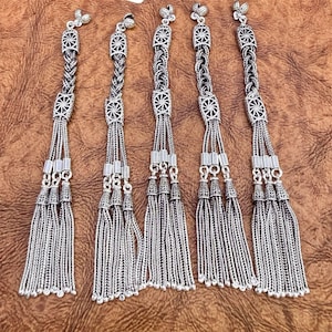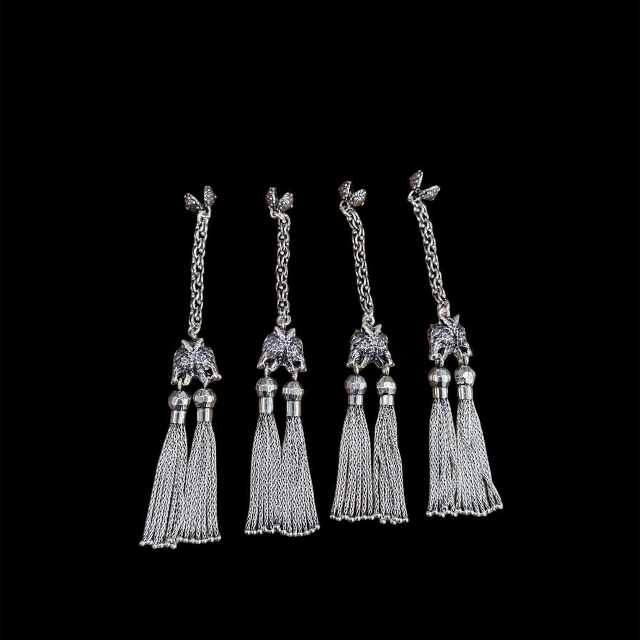 Product Details: * Material: 925 sterling silver * Design: Double wolf head with twin chain tassels * Handmade craftsmanship * Symbol of power and protection * Sold as one tassel