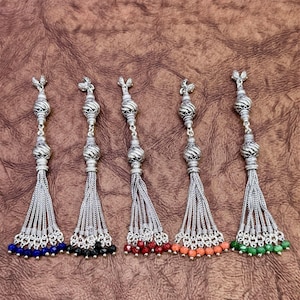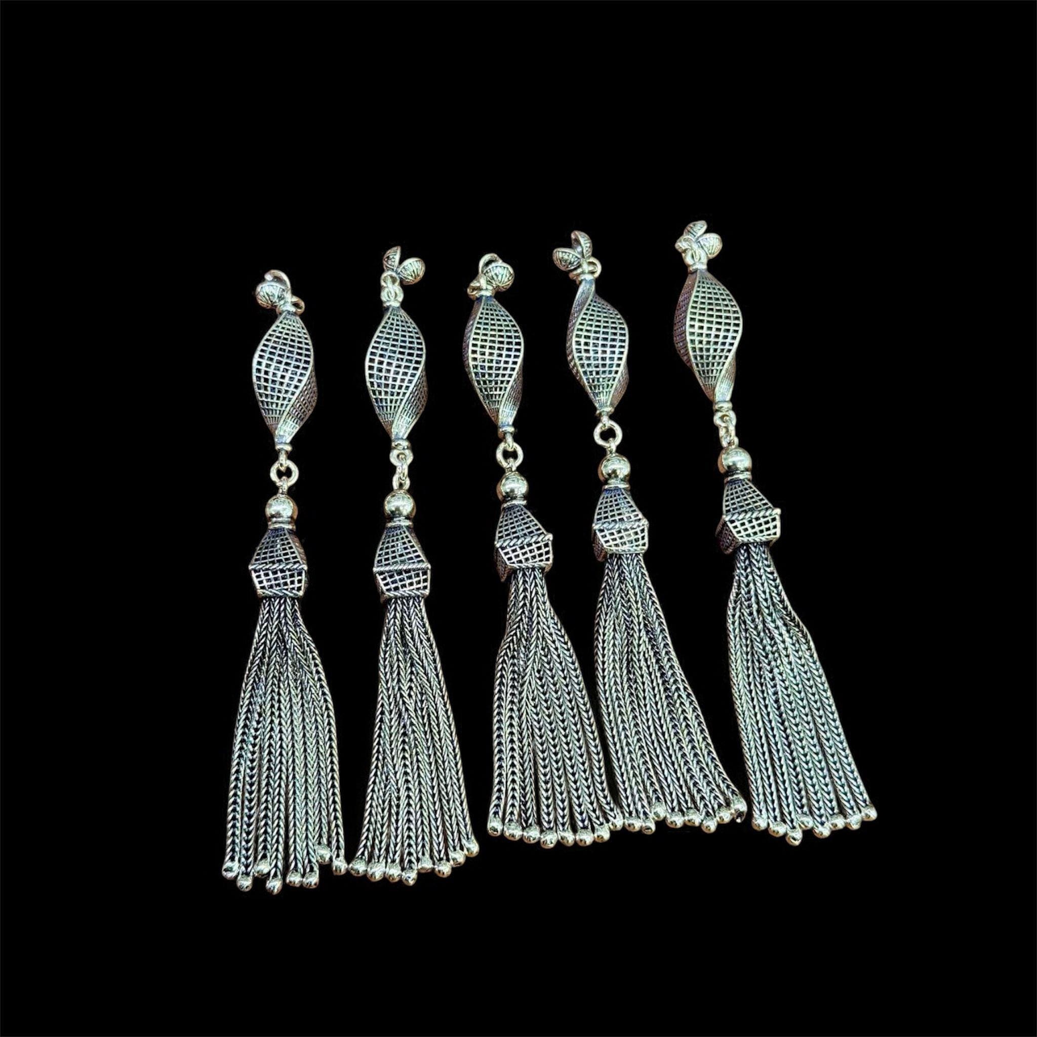 Description: Handcrafted from 925 sterling silver, this elegant filigree tassel showcases detailed latticework and multi-chain craftsmanship. Each piece is meticulously handmade by skilled artisans, offering both durability and sophistication. Perfect for tasbih collectors, custom prayer beads, or handmade jewelry makers.