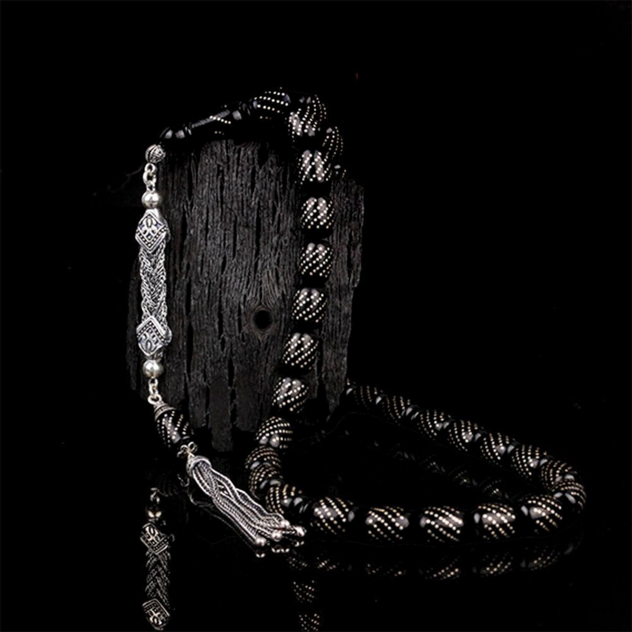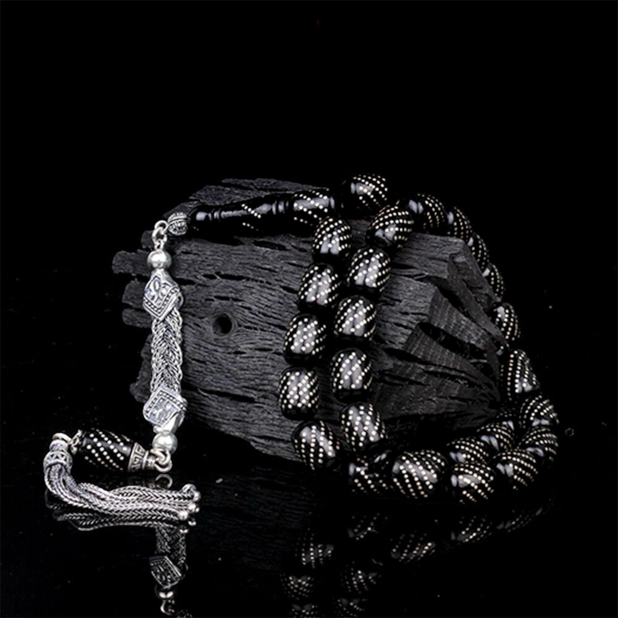 * Material: 925 Sterling Silver Tassel * Stone: Fire Amber (Pressed Kehribar) * Cut: Capsule * Bead Size: 8×10 mm * Imam Length: 3 cm * Total Length: 33 cm