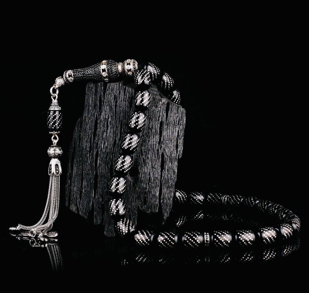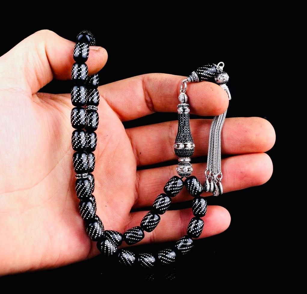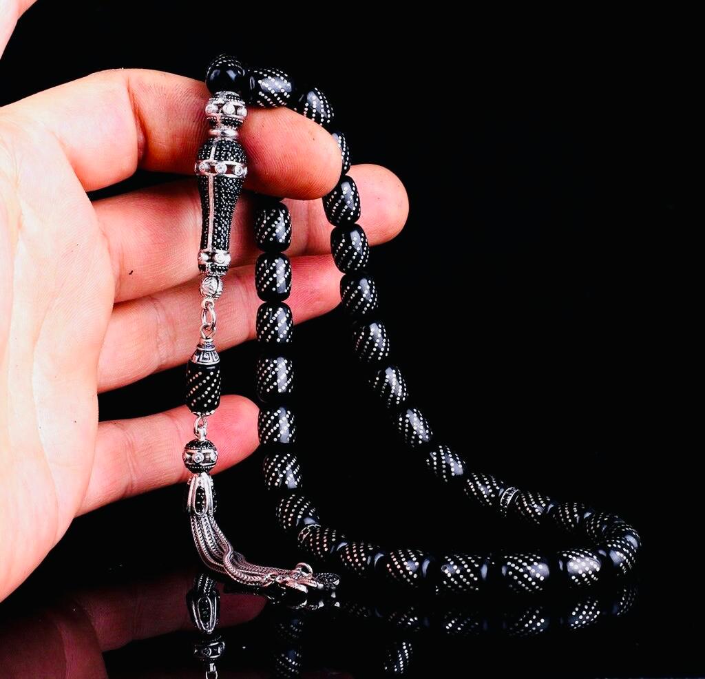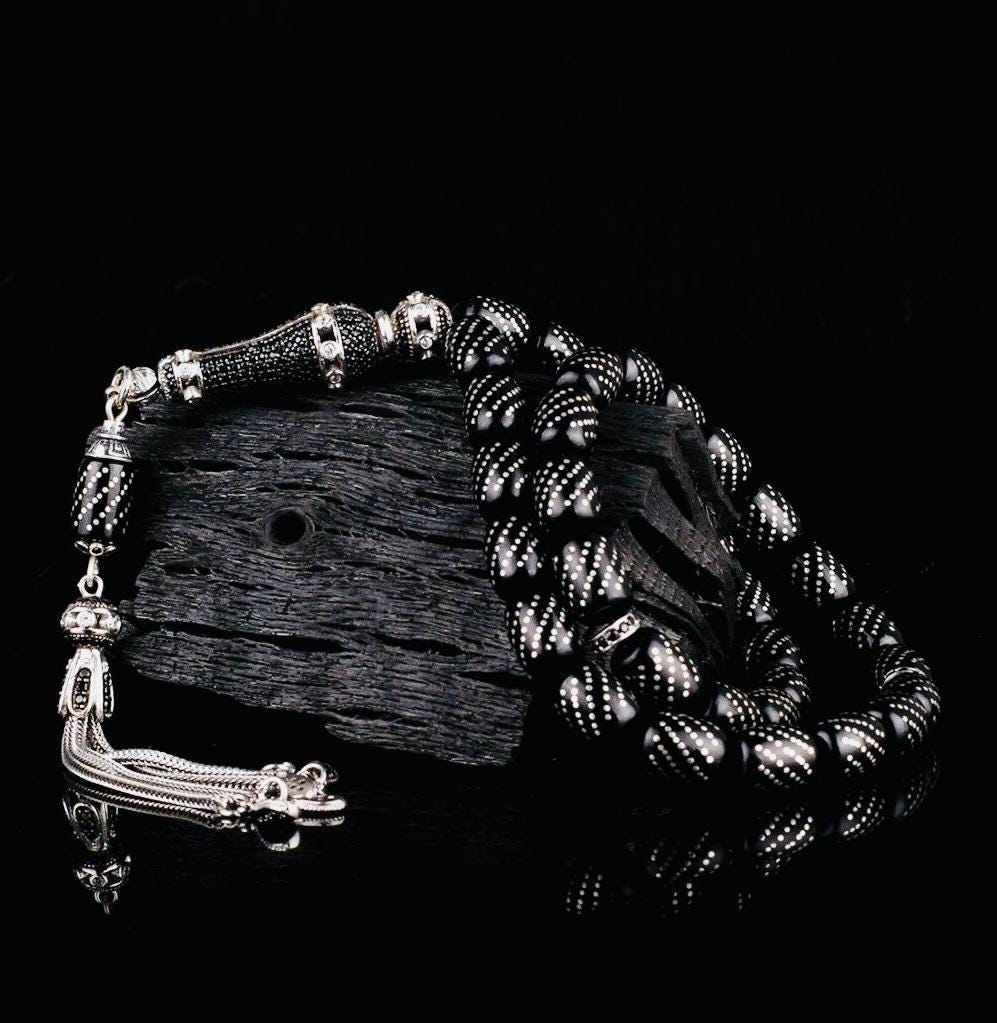 Details: * Material: Fire Amber & 925 Silver Tassel * Imam: Zircon Inlaid * Bead Size: 8×11 mm * Total Length: 30 cm