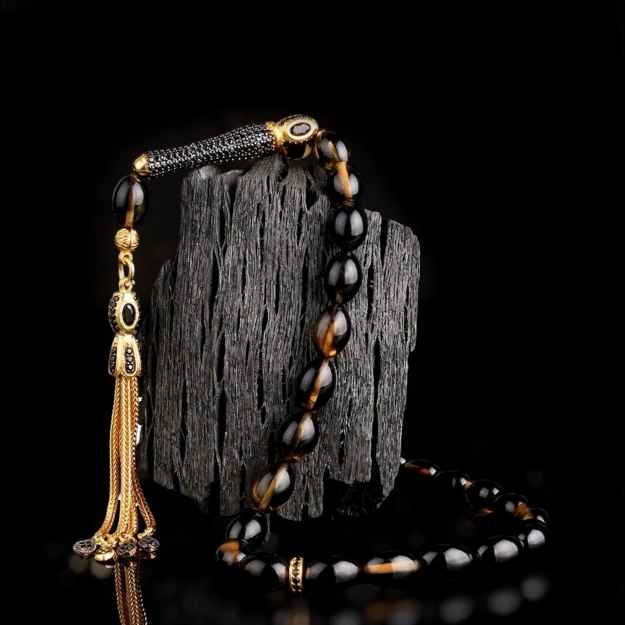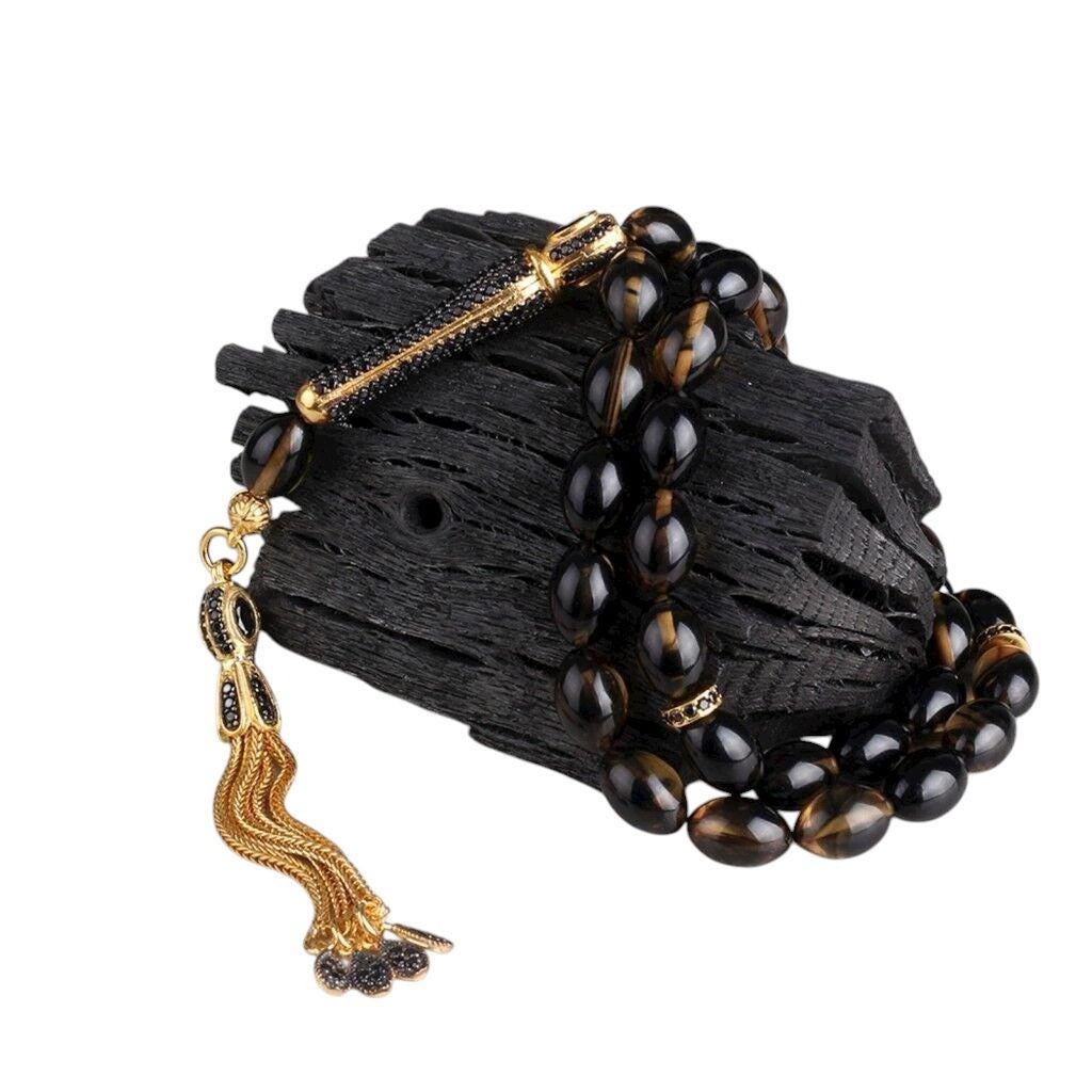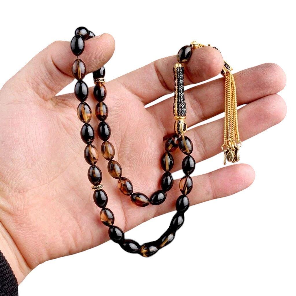 Color Fire Amber Tasbih | 925 Silver Misbaha with Zircon Tassel | Handmade Kehribar Prayer Beads