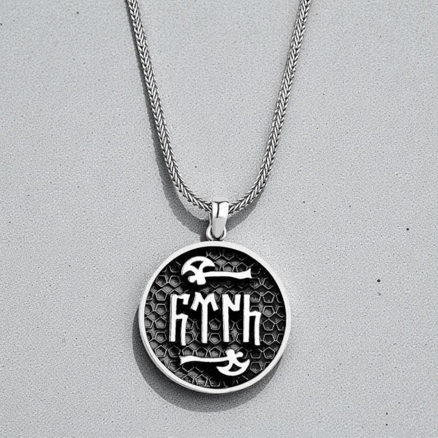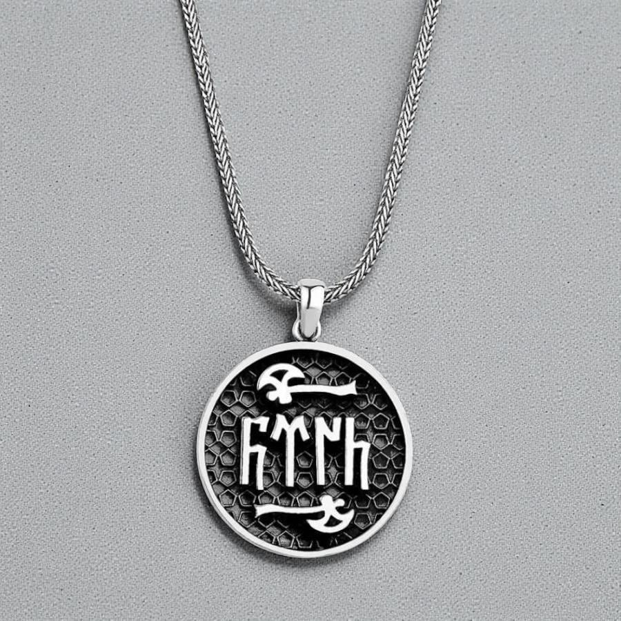 Description: A meaningful pendant featuring the ancient Gokturk “Turk” script, crafted from solid 925 sterling silver. Perfect for heritage lovers and a symbolic gift for him. Shipped in a gift box. Pendant weight: 4 g Material: 925 sterling silver