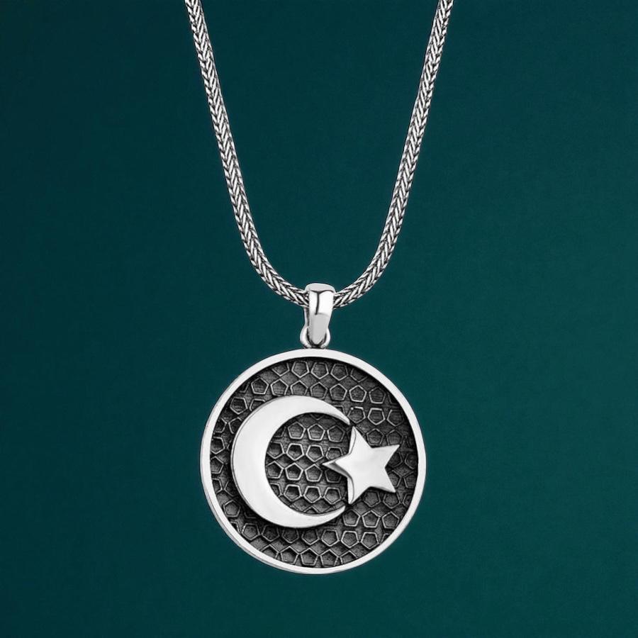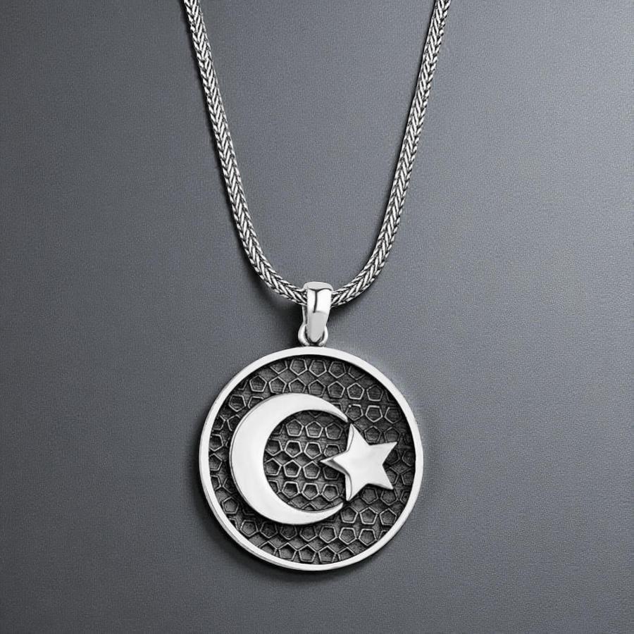 Minimalist crescent–star pendant crafted from solid 925 sterling silver. A meaningful gift for men who appreciate symbolic designs. Comes in a gift box.