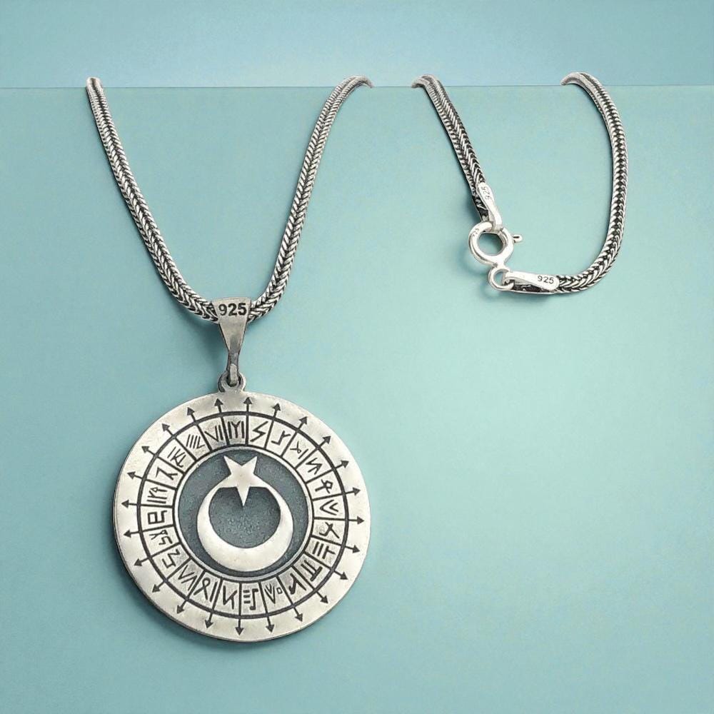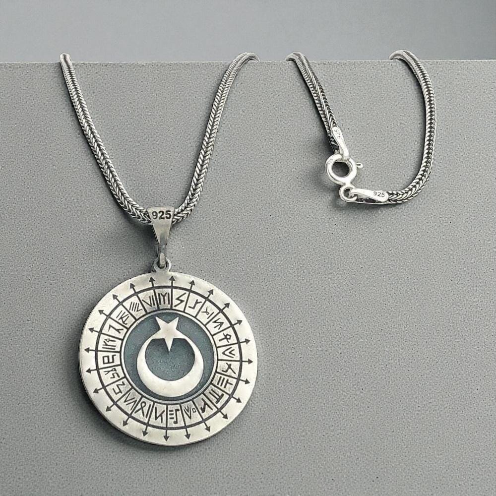 Description: Solid 925 sterling silver Ayyildiz pendant featuring ancient Turkic tribe symbols. Comes with a durable fox-tail chain and arrives in a gift box. A meaningful and elegant piece for daily wear or gifting.
