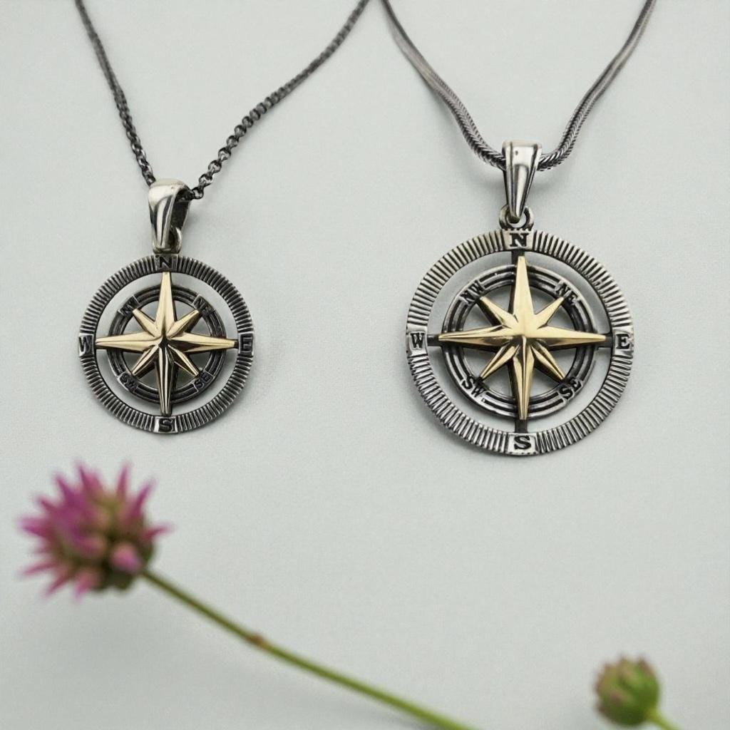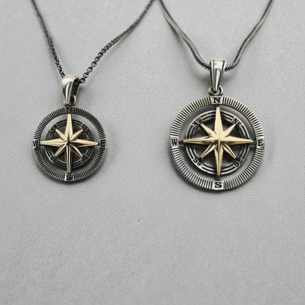Description: A matching sterling silver compass necklace set for couples. Both pendants are crafted from solid 925 silver—perfect for anniversaries, gifts, and everyday wear. Includes one men’s and one women’s necklace, each shipped in a gift box.