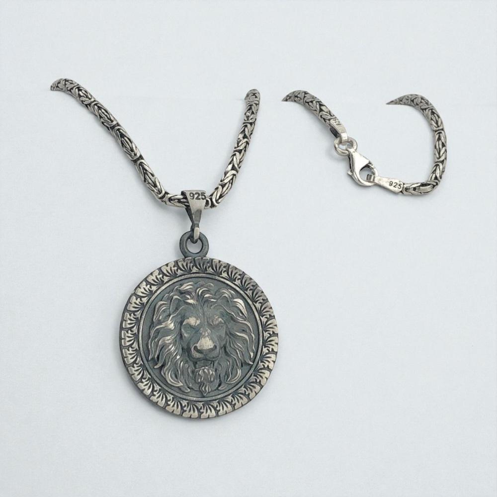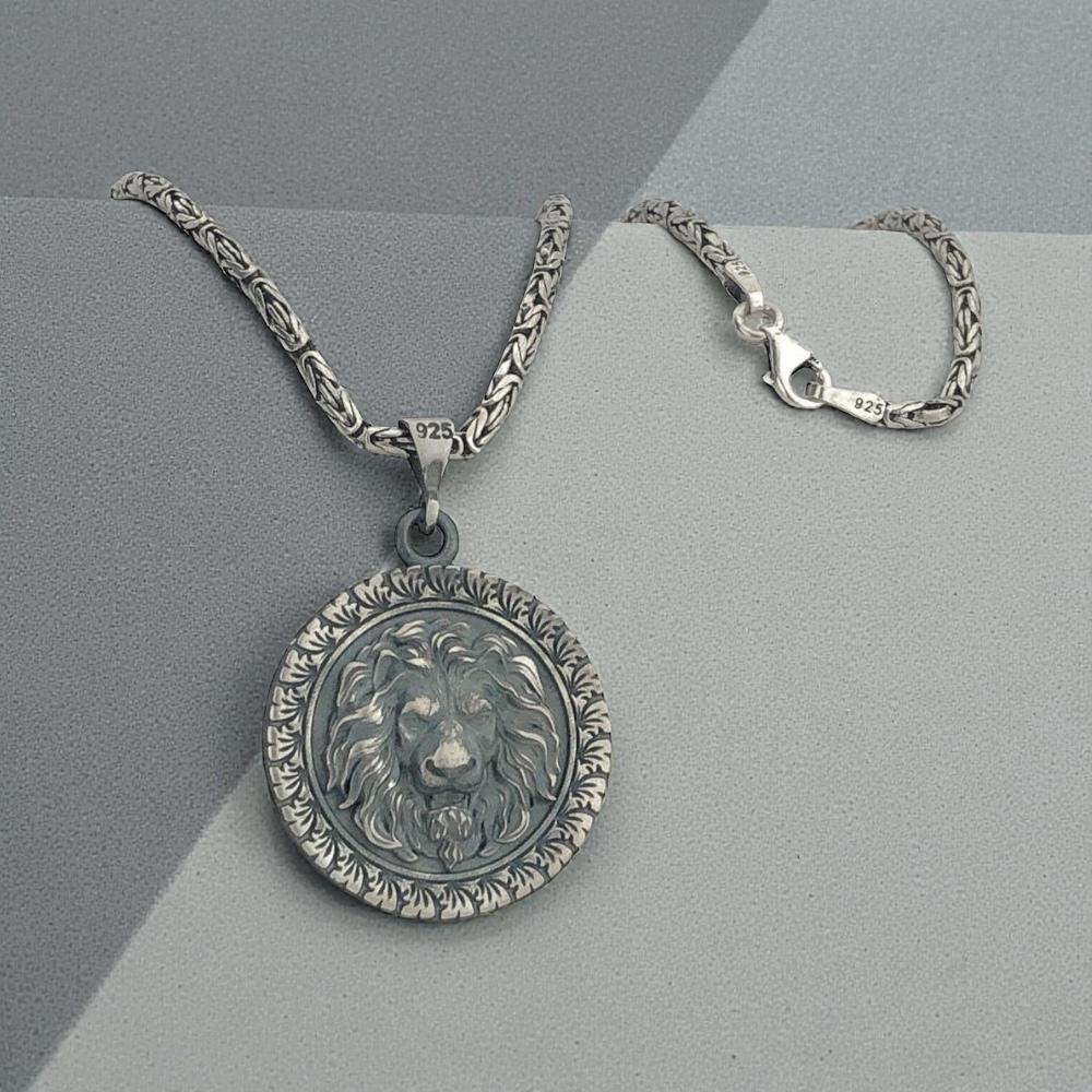 925 Sterling Silver Lion Pendant with King Chain – Men’s Necklace