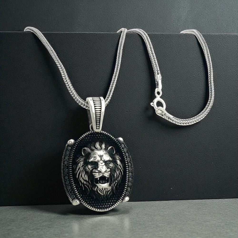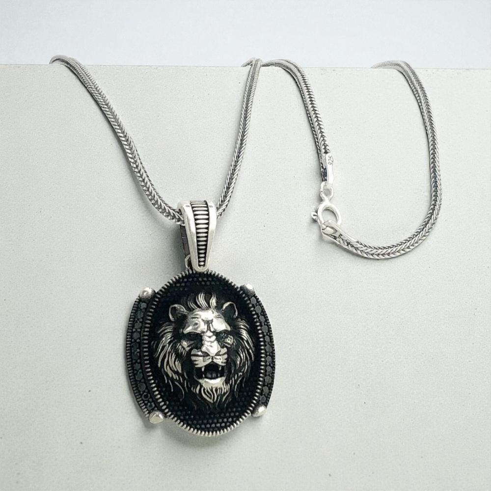 A bold black-stone lion pendant crafted in solid silver — perfect for everyday style or gifting.