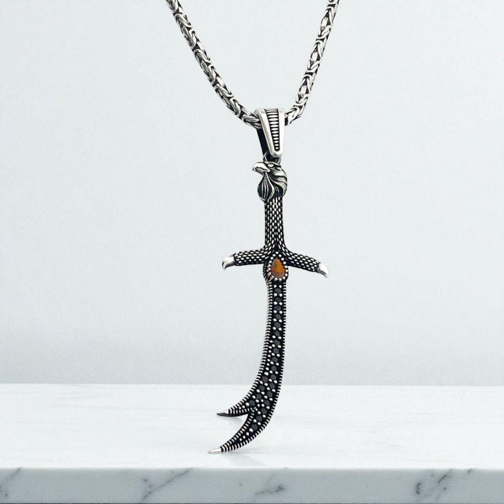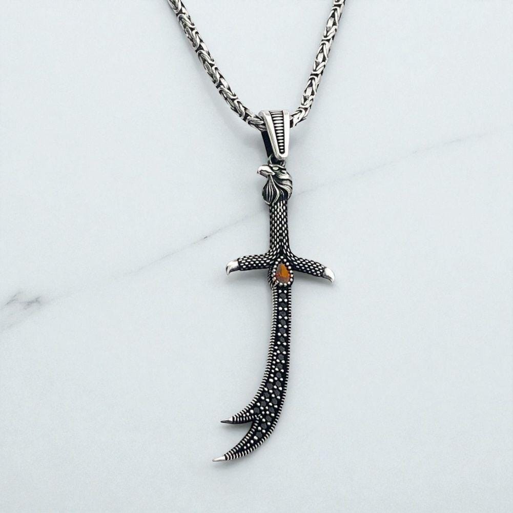 925 Sterling Silver Eagle Head Zulfiqar Pendant with Red Stone – King Chain