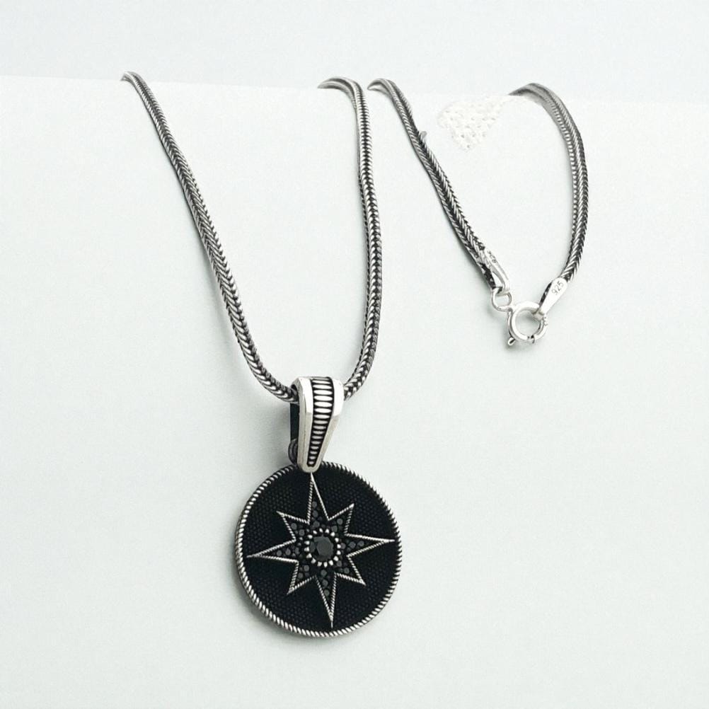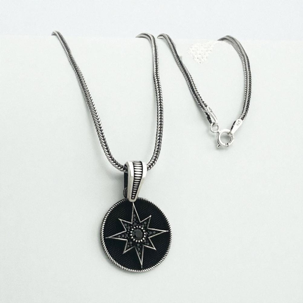 925 Sterling Silver Black Stone North Star Pendant Necklace