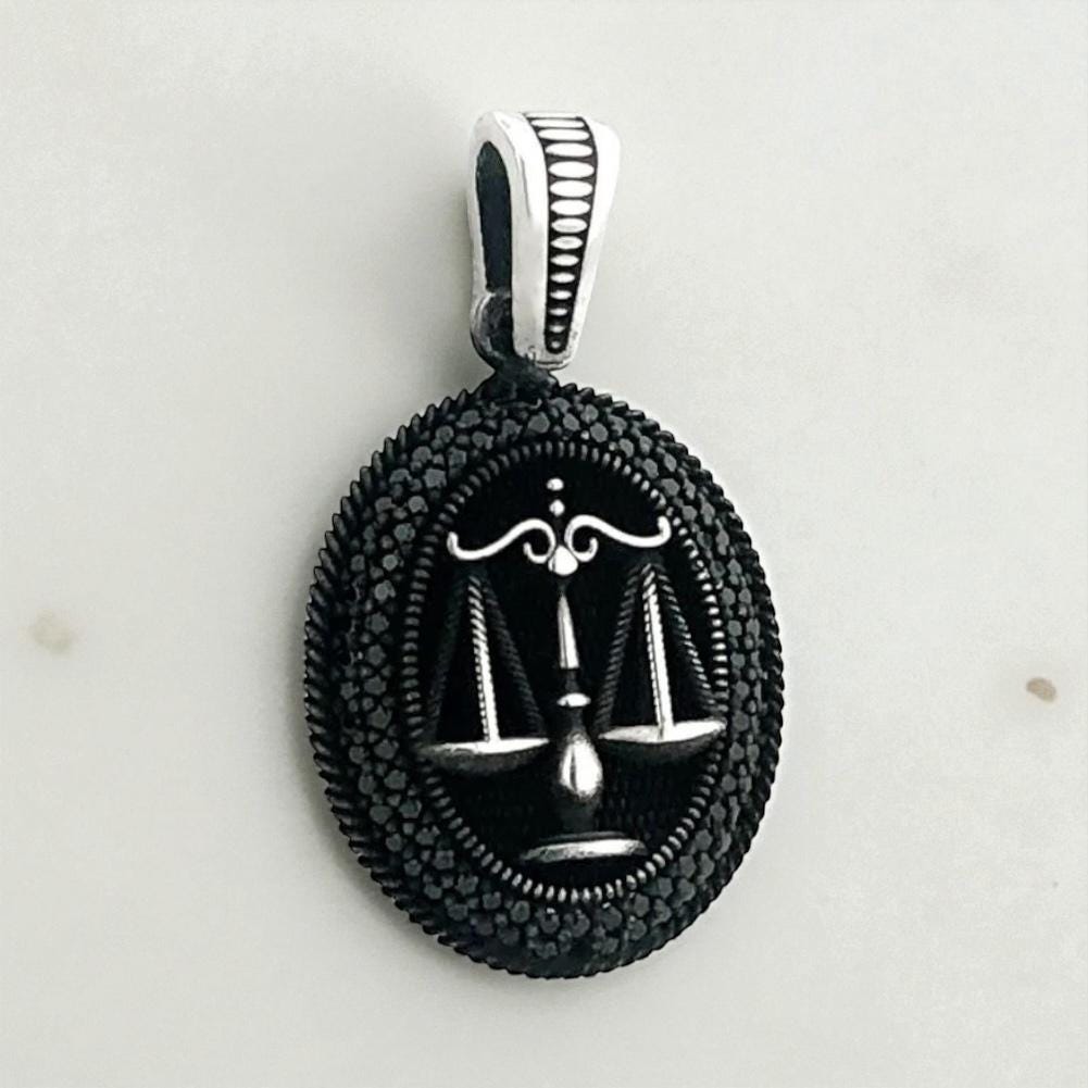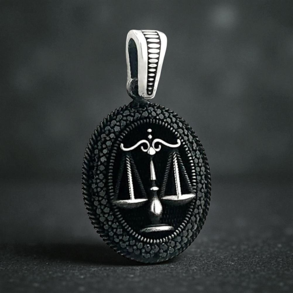 925 Sterling Silver Justice Scale Pendant with Black Stone