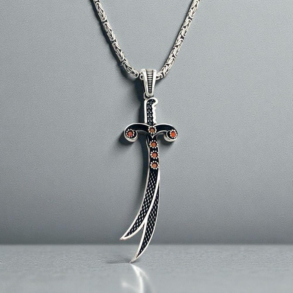 A bold and meaningful Zulfiqar sword pendant with a deep red stone—perfect powerful gift for him.