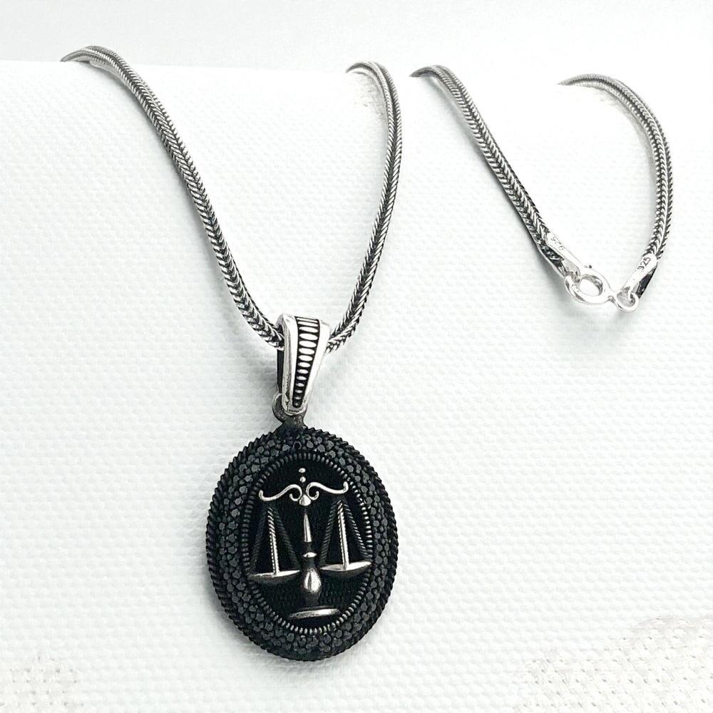 925 Sterling Silver Justice Scales Pendant with Black Stone