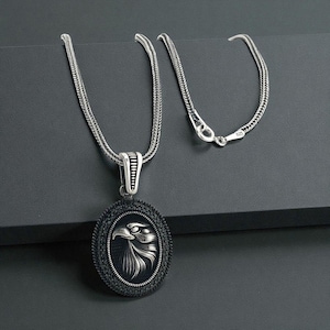 * Pendant weight: 7.40 g * Chain weight: 6.5 g * Total weight: 13.90 g * Size: 5.9 cm × 2.3 cm * Material: 925 sterling silver * Chain type: Fox tail chain * Comes in a gift box