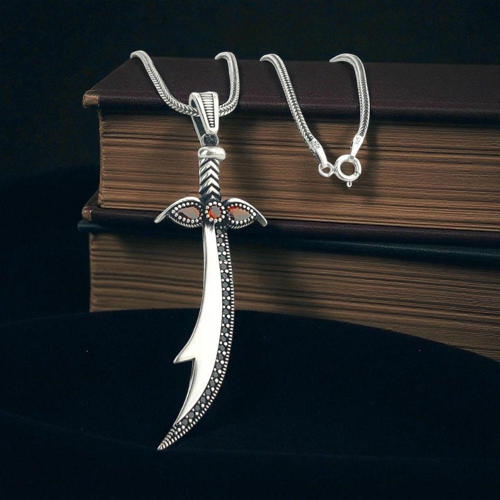 925 Sterling Silver Red Stone Zulfiqar Sword Necklace