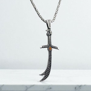 A meaningful and symbolic Zulfiqar sword pendant with a striking red stone. Perfect gift for him.