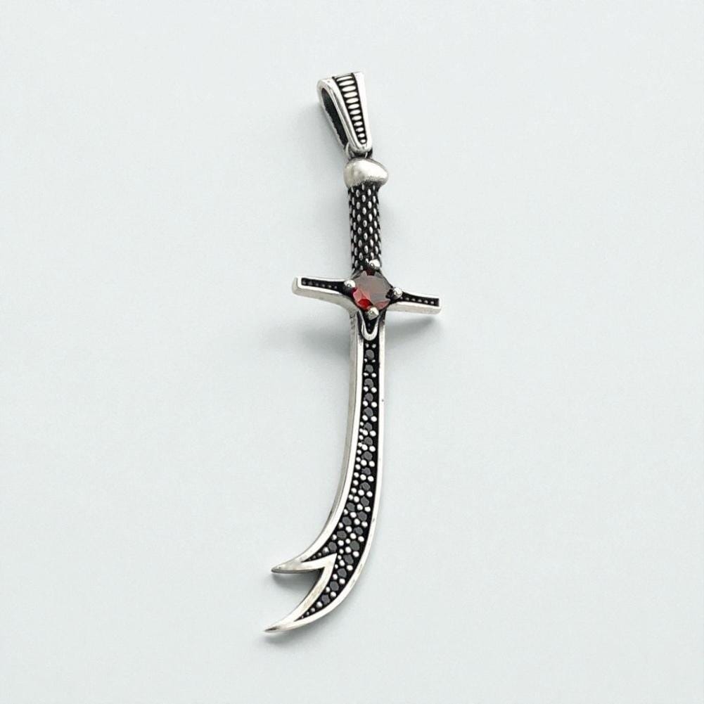 925 Sterling Silver Red Stone Zulfiqar Sword Pendant