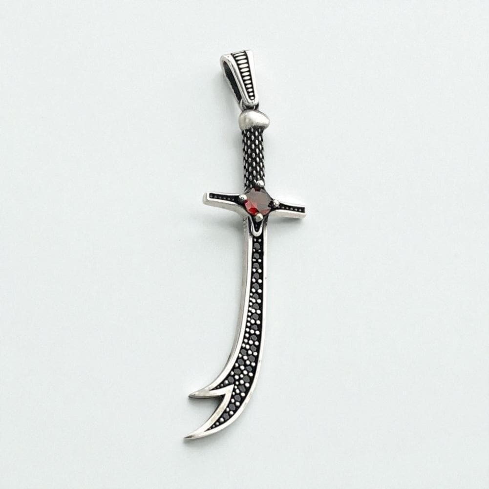 925 Sterling Silver Red Stone Zulfiqar Pendant.