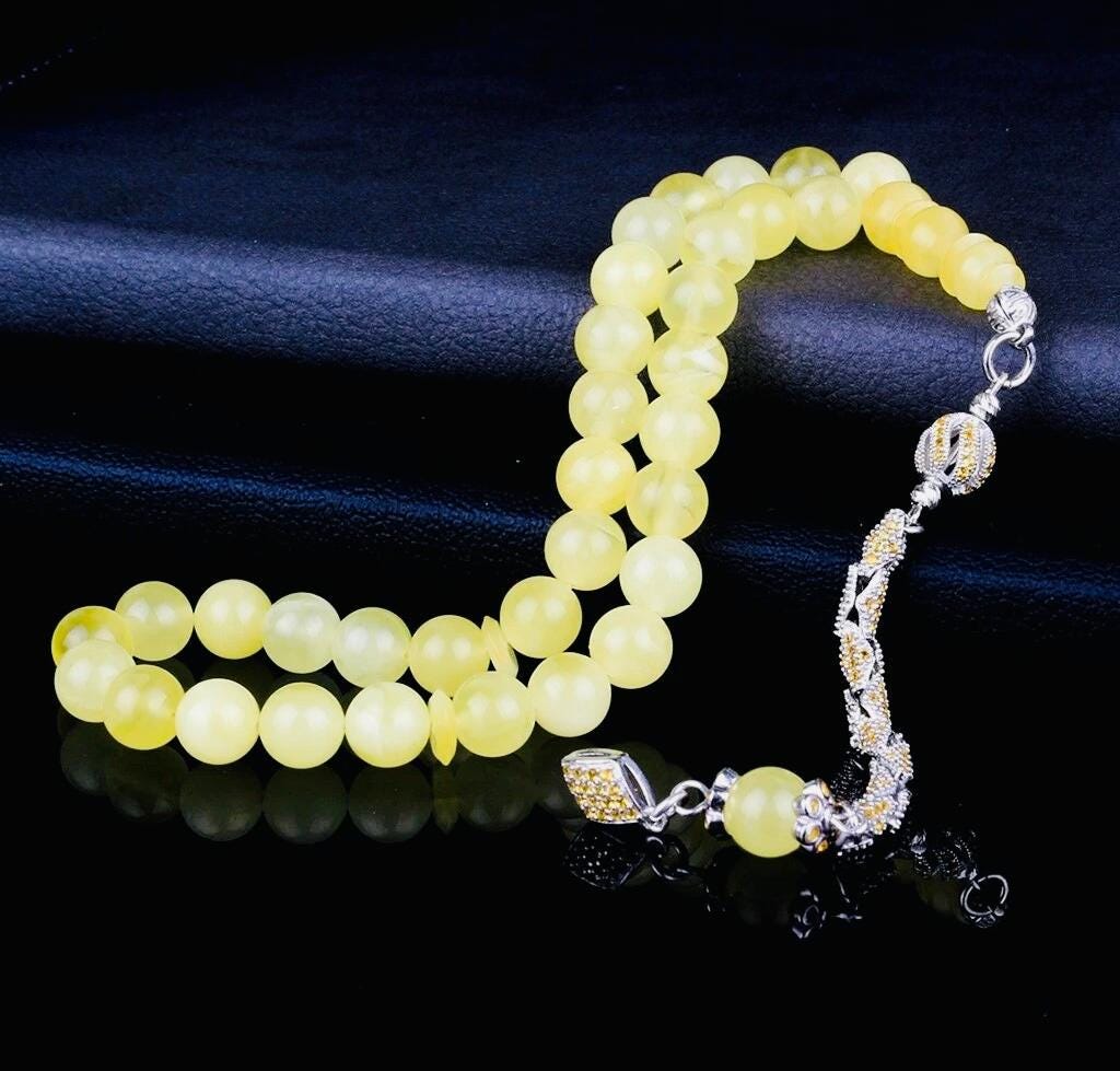 Elegant damla amber misbaha featuring zircon stone accents and a genuine silver tassel. Perfect for daily use, meditation, prayer, or as a meaningful gift.