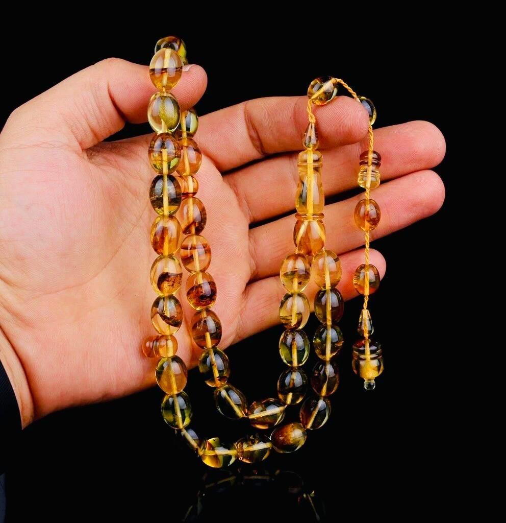 Large Damla Amber Misbaha with System Tassel – 11×14mm Amber Prayer Beads
