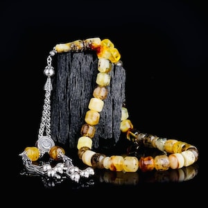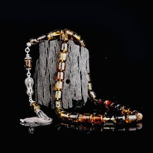 Handcrafted faceted-cut red amber tasbih paired with a 925 sterling silver tassel. A refined piece for daily dhikr, meditation, collectors, or as a meaningful gift.