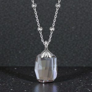 This elegant necklace features a beautifully cut baget crystal stone paired with a 925 sterling silver chain, creating a timeless and modern look. Its brilliant shine makes it ideal for both daily wear and special occasions.