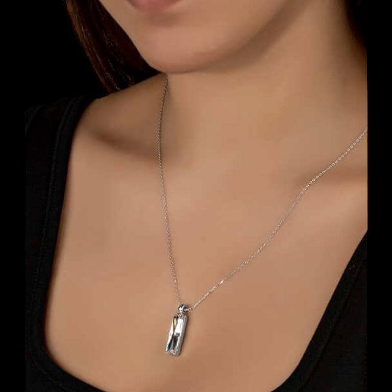 Details: * Crystal-cut baget pendant * 925 sterling silver chain * Minimalist & modern style * Gift-ready packaging * Handmade craftsmanship * Weight may vary ±10% due to artisanal production