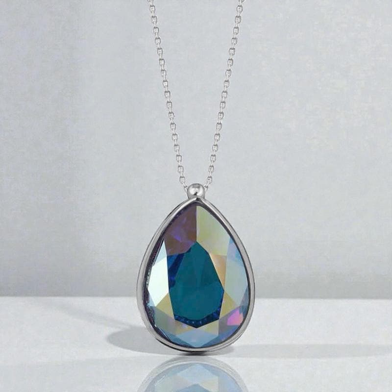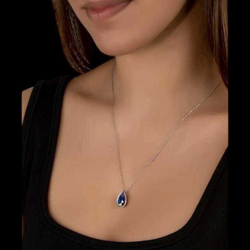 This elegant teardrop-shaped pendant features a sparkling Crystal stone set on a 925 sterling silver base. Handmade by skilled artisans, the pendant offers a brilliant shine and a timeless feminine style. Its lightweight and modern form makes it perfect for both daily wear and special occasions.