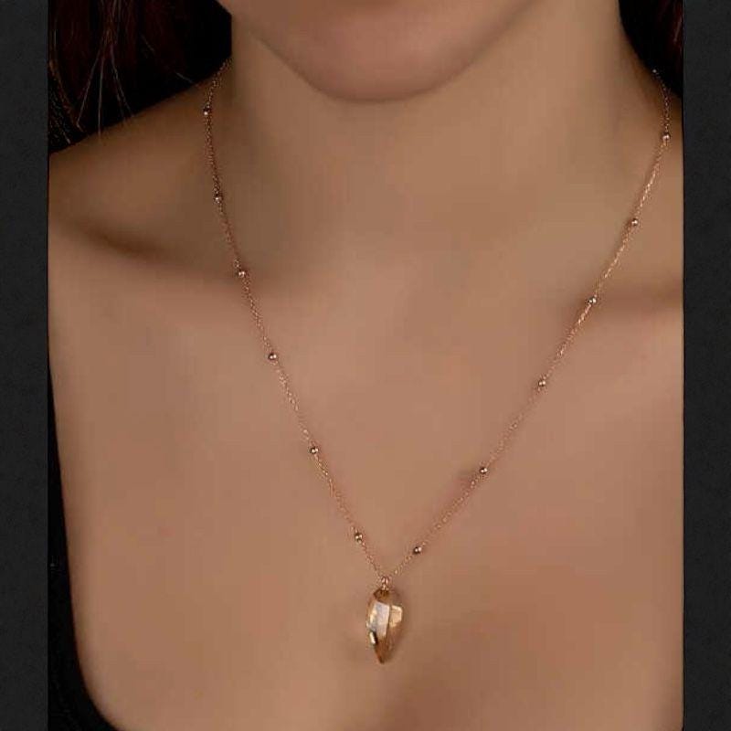 This elegant necklace features a beautifully cut crystal stone that reflects light with a bright, diamond-like sparkle. The pendant is crafted from 925 sterling silver and finished with a durable rose gold plating, giving it a warm and modern shine. Perfect for daily wear and versatile enough to pair with any outfit.