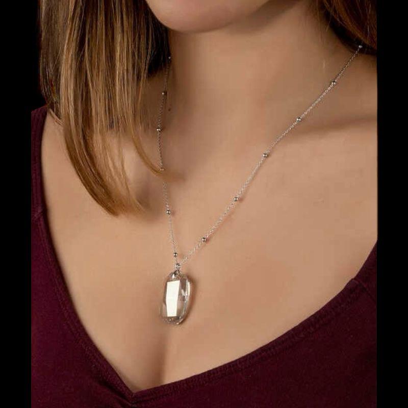 This elegant necklace features a sparkling crystal baget-cut pendant paired with a high-quality sterling silver chain (925 silver). Its modern yet timeless design makes it perfect for everyday wear or as a refined accessory for special occasions.