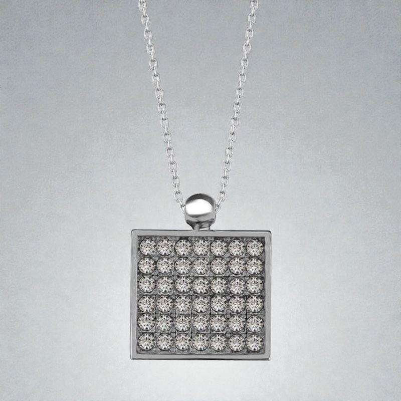 This elegant necklace features a beautifully cut crystal stone framed in a shiny square design. The pendant is paired with a 925 sterling silver chain, offering long–lasting shine and a stylish look for daily wear or special occasions.