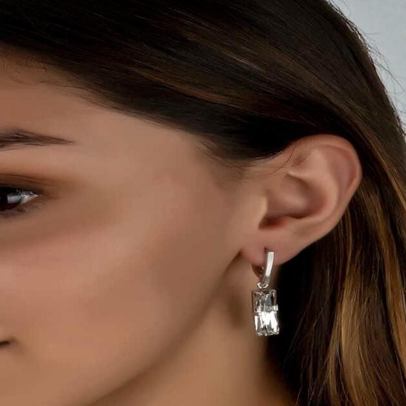 These elegant earrings feature a brilliant crystal baguette stone set on a 925 sterling silver base, crafted to add sparkle and sophistication to any look. The long dangle design moves gracefully with every step, catching the light and creating a stunning shine.