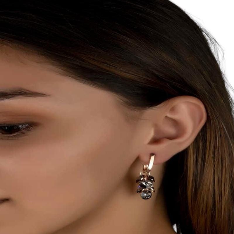 These elegant earrings feature a sparkling crystal cluster design that moves beautifully with every step. Crafted from 925 sterling silver, the piece offers both durability and a refined shine. The dangling structure creates an eye-catching look, perfect for daily wear or special occasions.