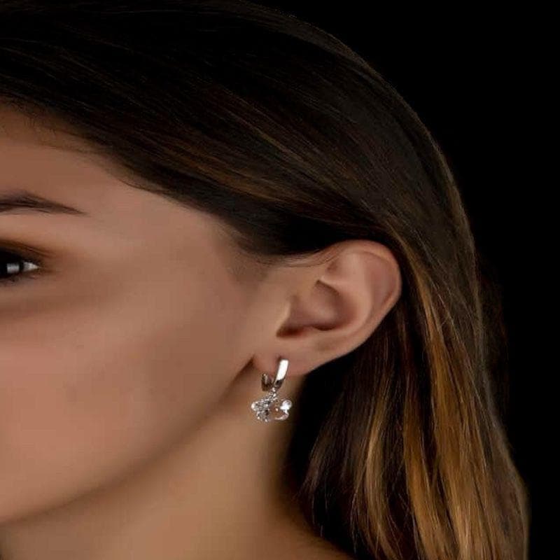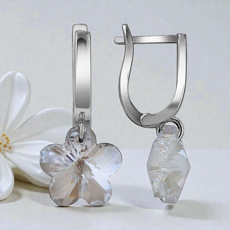 Silver Dangle Flower Earrings – Crystal White Drop Design – 925 Sterling Silver