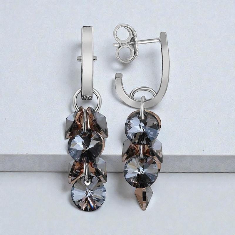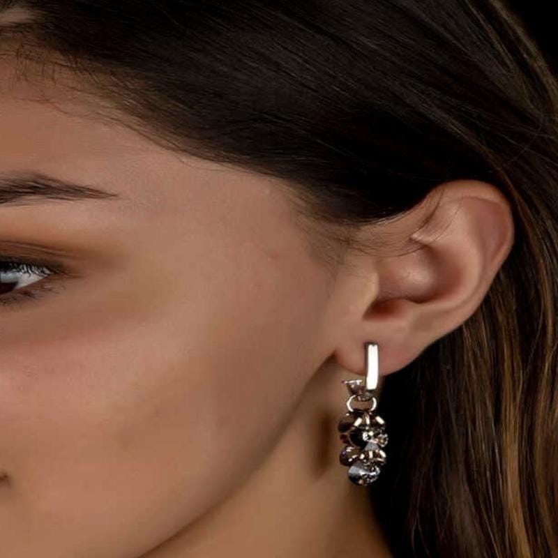 These elegant earrings feature sparkling crystal stones arranged in a cascading cluster design. Crafted from 925 sterling silver, they offer a bright, modern, and feminine look suitable for both everyday wear and special occasions.